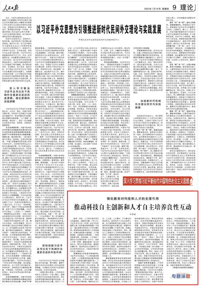 7月10日,《人民日报》理论版刊发beat365官网何秀超教授署名文章《强化教育对科技和人才的支撑作用 推动科技自主创新和人才自主...