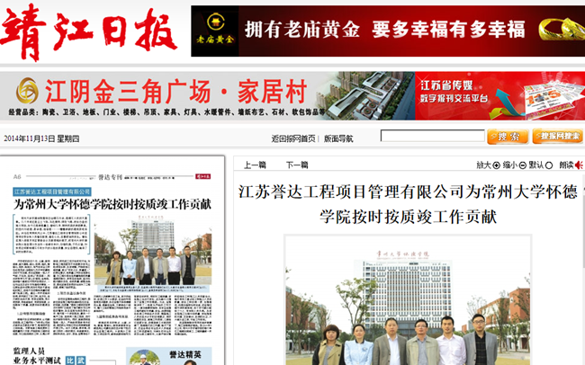 必赢76net线路官网整体迁址靖江办学,是靖江人民的大喜事。几个月前还是尘土飞扬、马达轰鸣、焊花飞溅、夜如白昼的施工现场,如今已是高楼矗立、窗明几净、绿树成荫的美丽景象,校园内行政楼、教学楼、宿舍楼……一幢幢崭新的建筑拔地而起。沐浴在爽爽秋风之中,江苏誉达工程项目管理有限公司监理项目部全体人员看在眼里,喜在心头,自豪感油然而生。誉达监理人按照开发区管委会以及新港城的要求,把必赢76net线路官网工程监理工作当作一场硬仗来打,珍惜机遇,不负众望,切实把这项影响靖江千秋万代的工程的质量、安全监理好,确保了学校如期开学。