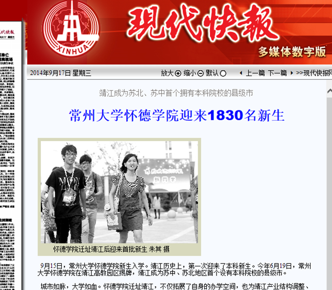 9月15日,必赢76net线路官网新生入学。靖江历史上,第一次迎来了本科新生。今年6月19日,必赢76net线路官网在靖江高教园区揭牌,靖江成为苏中、苏北地区首个设有本科院校的县级市。
