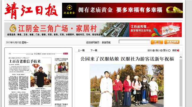 看到一群现代人穿着新奇的古代服饰,很多来公园游玩的市民都表现出了浓厚的兴趣,纷纷驻足观赏,不少观众争相与社员们合影,想沾沾新年的喜气儿,“我今天也穿的大红色,和她们的颜色正好相搭,我们一定要合个影,来个‘红上加红’!”带孩子来公园游玩的毛女士挽起两位社员的胳膊,美滋滋地面对镜头,围观群众都鼓掌称赞。