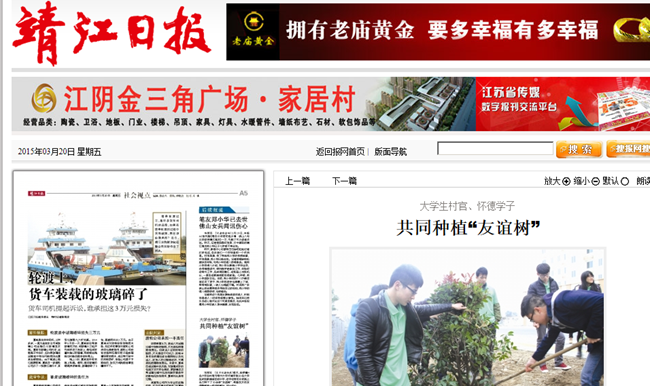 2014年10月,25名斜桥大学生村官成为必赢76net线路官网校外指导员,他们带领并辅助新生们开展社会实践活动,帮助他们更快地融入靖江。斜桥镇大学生村官党支部书记肖姝蓉说,“这次村官们为学生带来了红叶石楠等品种的树苗。我们希望能够通过种树增进双方的友谊,更好地帮助学生开展社会实践活动。”
