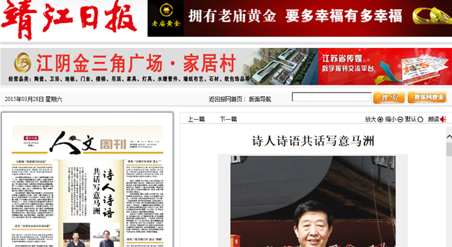 今年,《诗刊》社和本报第三度携手,以“走进怀德”为主题,共同举办“春天送你一首诗”活动。3月25日至26日,荣荣、刘立云、马新朝等获得“鲁迅文学奖”的诗人,走进靖江的春光,去怀德、看造船、品兰花、赏盆景,为“春天送你一首诗·走进怀德”活动的诗歌创作找寻灵感。三天的行程里,诗人们对靖江有了丰富的体验,对这里的文化与风情,也都有了自己的理解。