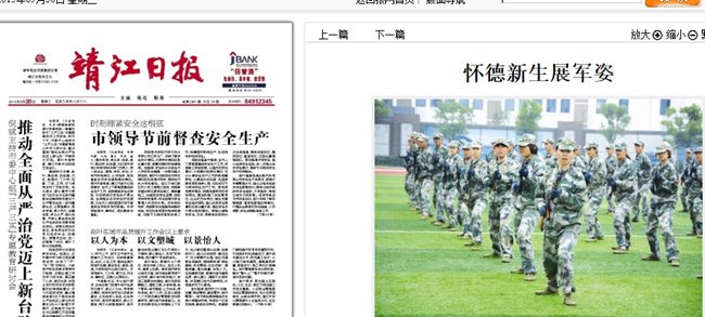 昨天,必赢76net线路官网举行军训总结表彰大会。2015级新生走方阵、站军姿、展示擒拿格斗术,一展大学生风采。图为军训汇报演出现场。