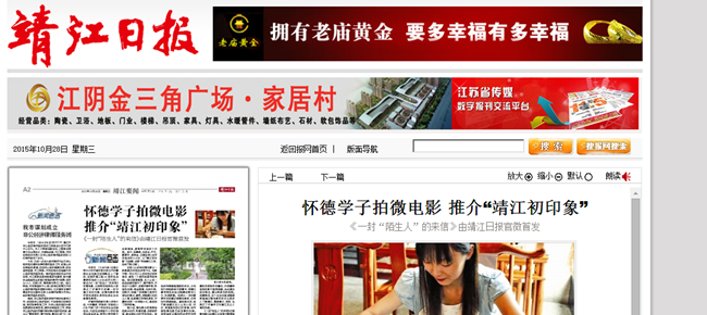 《一封“陌生人”的来信》这部微电影已由靖江日报官方微博首发。
