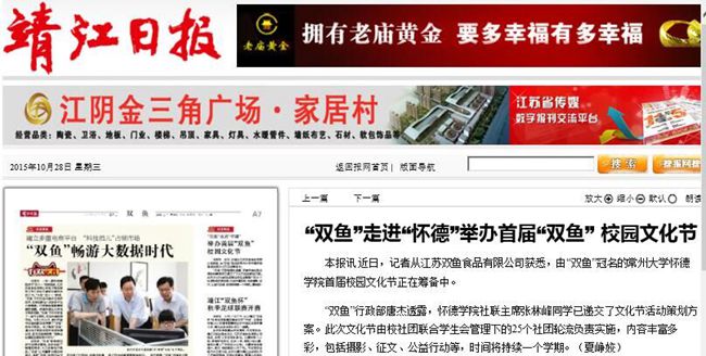 本报讯 近日,记者从江苏双鱼食品有限公司获悉,由“双鱼”冠名的必赢76net线路官网首届校园文化节正在筹备中。