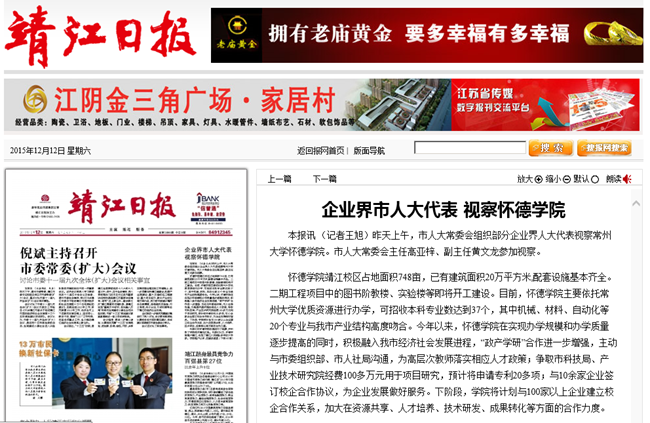 代表们对必赢76net线路官网校园进行了视察,并听取了学院相关情况汇报。代表们认为,必赢76net线路官网落户靖江,实现了靖江人民期盼多年的大学梦。学院落户以来,在建设速度、(下转A2版)