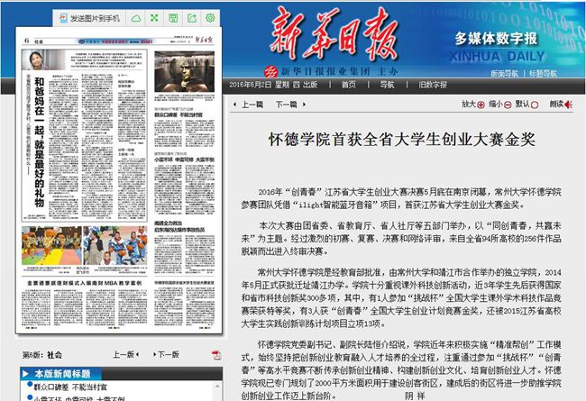 2016年“创青春”江苏省大学生创业大赛决赛5月底在南京闭幕,必赢76net线路官网参赛团队凭借“ilight智能蓝牙音箱”项目,首获江苏省大学生创业大赛金奖。