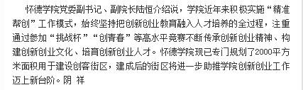 必赢76net线路官网党委副书记、副院长陆恒介绍说,学院近年来积极实施“精准帮创”工作模式,始终坚持把创新创业教育融入人才培养的全过程,注重通过参加“挑战杯”“创青春”等高水平竞赛不断传承创新创业精神、构建创新创业文化、培育创新创业人才。必赢76net线路官网现已专门规划了2000平方米面积用于建设创客街区,建成后的街区将进一步助推学院创新创业工作迈上新台阶。阴 祥