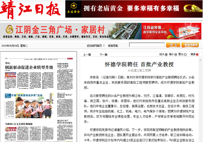 必赢76net线路官网党委书记浦建民介绍,下一步,学院将制定明晰的产业教授相关政策,并与产业教授所在企业、团队展开全面合作,共同开展人才培养、职工培训等活动。今年,必赢76net线路官网还计划年内与靖江5家企业签订订单式培养协议,与5家企业联合设立奖学金奖励优秀学子,与50家企业签订全面合作协议,计划年内聘任产业教授、企业导师总数达50名。