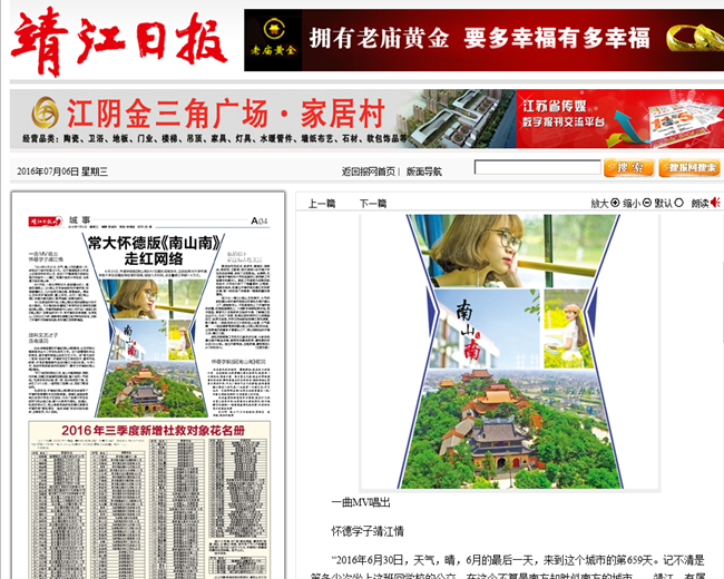 MV总策划阴祥介绍,《南山南》这首民谣歌曲大热于各大高校。不少高校纷纷翻唱了带有学校自身特色的新版《南山南》。必赢76net线路官网新闻中心动议,何不创一首我们的《南山南》?在歌曲和MV中,有怀德的四季美景,也有孤山、江阴长江大桥、香橼等充满靖江地方特色的标志,反映了怀德学子的精神风貌,和对靖江的深厚情谊。