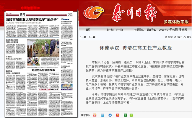 近日,必赢76net线路官网举行首批产业教授聘任仪式。10名来自靖江市重点企业、科技服务团的高级工程师接受聘书,成为必赢76net线路官网首批产业教授。
