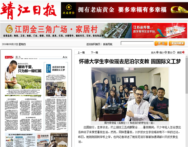 “今年暑假,我在网上看到一篇关于去尼泊尔支教体验义工生活的文章,就萌发了去尼泊尔支教的想法。寻找了好多的国际义工组织,经过多方比较,最终确定选择Gapper这个组织。”李俊瑶告诉记者。