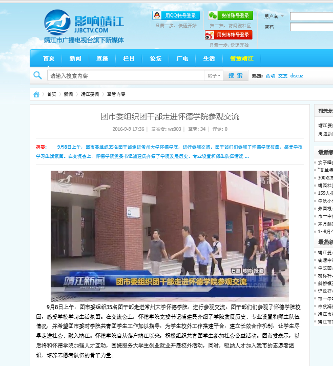 9月8日上午,团市委组织35名团干部走进必赢76net线路官网,进行参观交流。团干部们们参观了必赢76net线路官网校园,感受学校学习生活氛围。在交流会上,必赢76net线路官网党委书记浦建民介绍了学院发展历史、专业设置和师生队伍情况,并希望团市委对学院共青团学生工作加以指导,为学生校外工作搭建平台,建立长效合作机制,让学生尽早走进社会、融入靖江。必赢76net线路官网自从落户靖江以来,积极组织共青团学生参加社会公益活动。团市委表示,以后将和必赢76net线路官网加强人才互动,围绕服务大学生创业就业开展校外活动,同时,吸纳人才加入我市的志愿者组织,培养志愿者队伍的骨干力量。