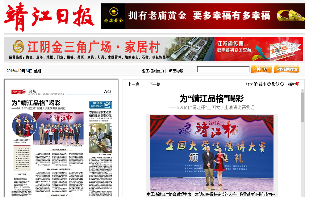 这里的人们有着绝处逢生的勇气,四百年前有陈函辉,近代有实业家刘国钧,现在更有千千万万靖江人……在选手们的演讲稿中,频频出现的靖江元素无不彰显着他们对“靖江品格”的由衷称赞。