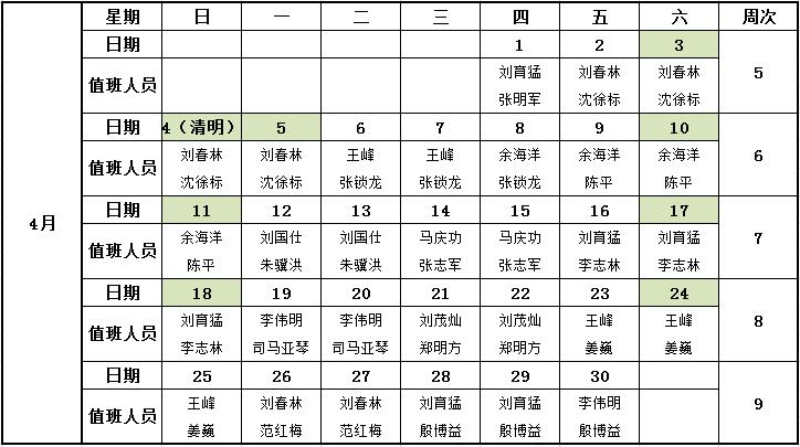 2021年4月值班安排