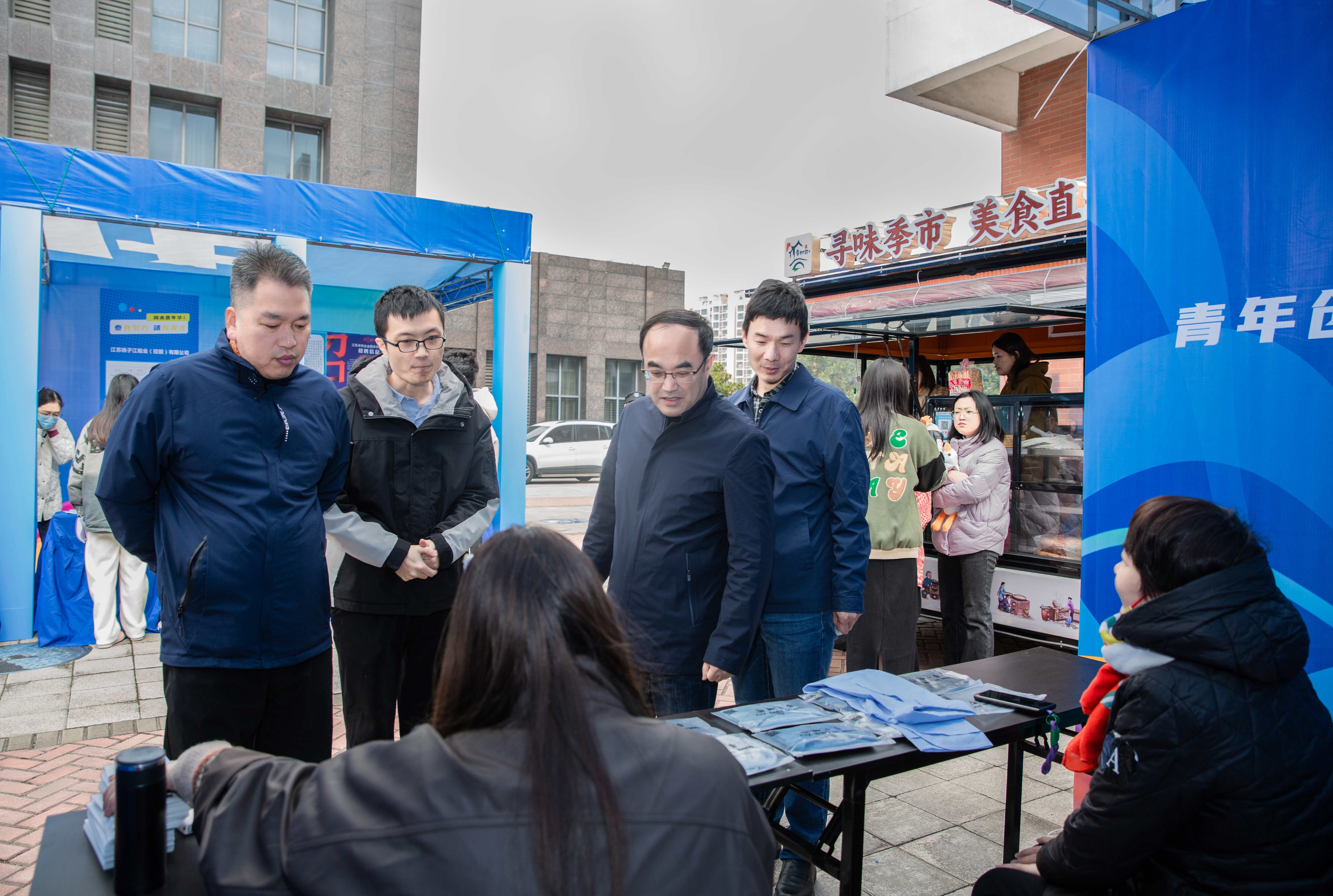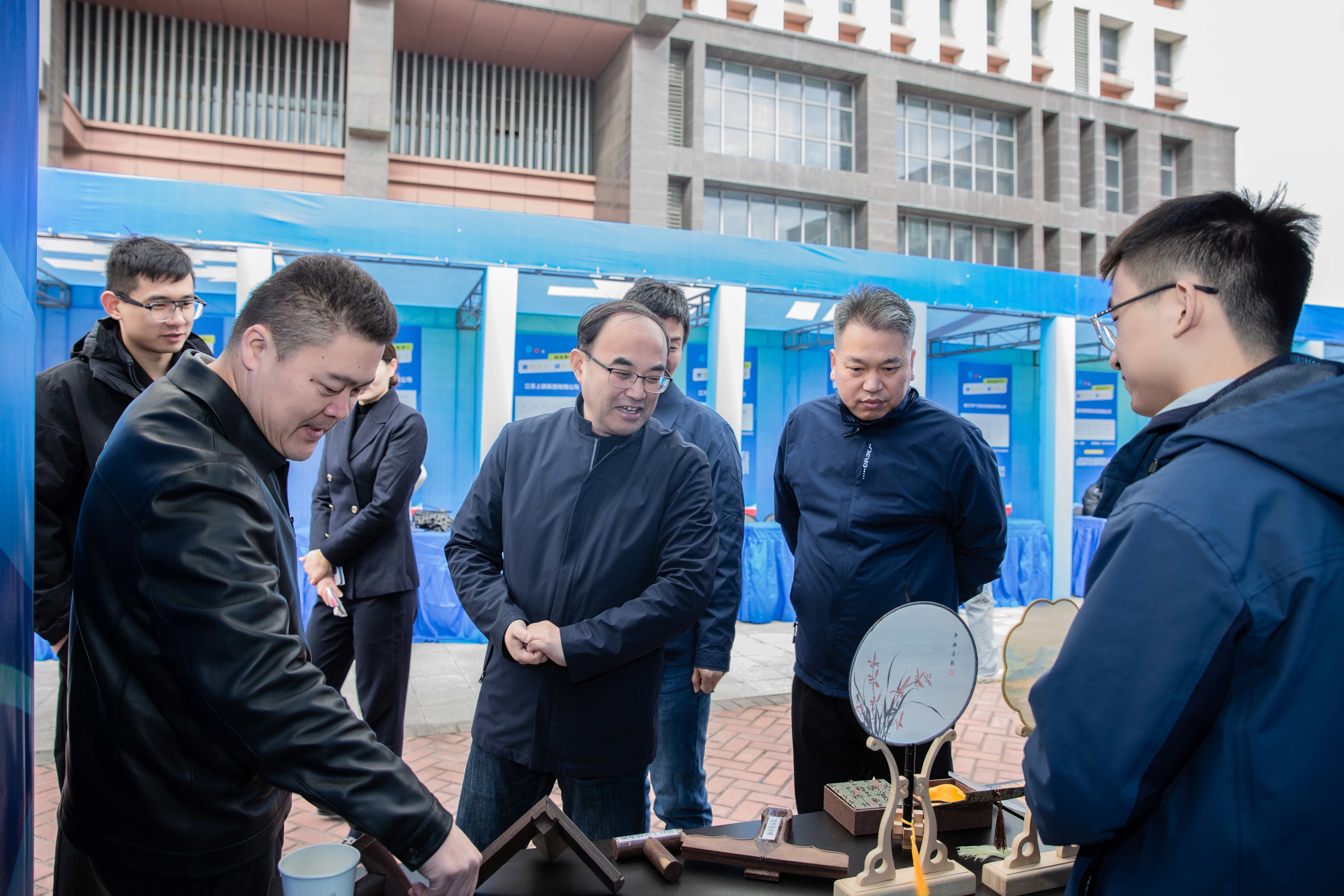 党委书记李伟明,副院长刘育猛,党委副书记、副院长刘国仕在相关职能部门负责人陪同下到活动现场参观指导工作,与各招聘单位及参加项目展示的团队亲切交流。李伟明对各招聘单位的到来表示欢迎,同时祝愿各用人单位在学院招聘到所需要的人才,满意而归。他勉励创业学子敢闯敢试,坚守创业初心,保持创业热情,在实干中创造人生价值。