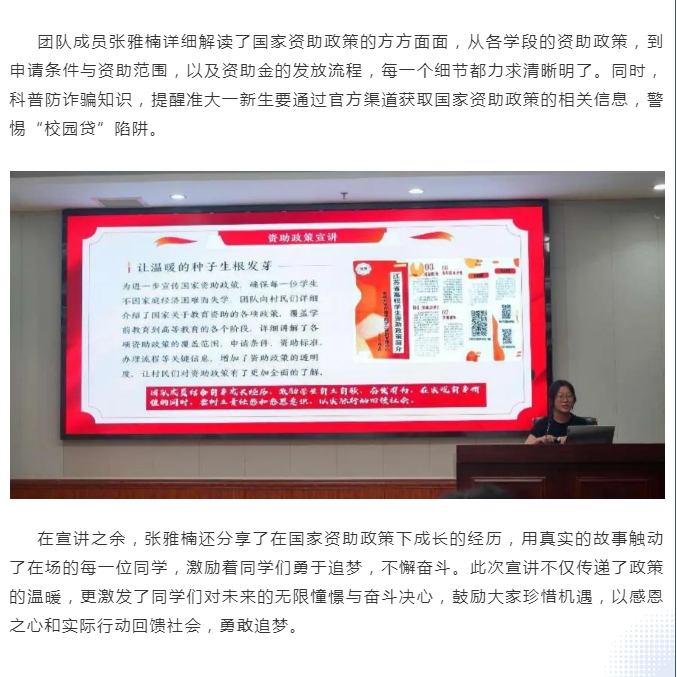 此次资助政策宣传活动,不仅是一次政策的传递与解读,更是一次心灵的交流与碰撞。萤火实践团将不忘初心,把暖心资助进行到底,通过多种渠道将党和政府的关爱送到每一位家庭经济困难学生心上,进一步做好“精细、精心、精准”的资助育人工作,奋力构建新时代资助宣传体系。资助之路不息,助学之心永恒,萤火实践团的脚步永不停歇。