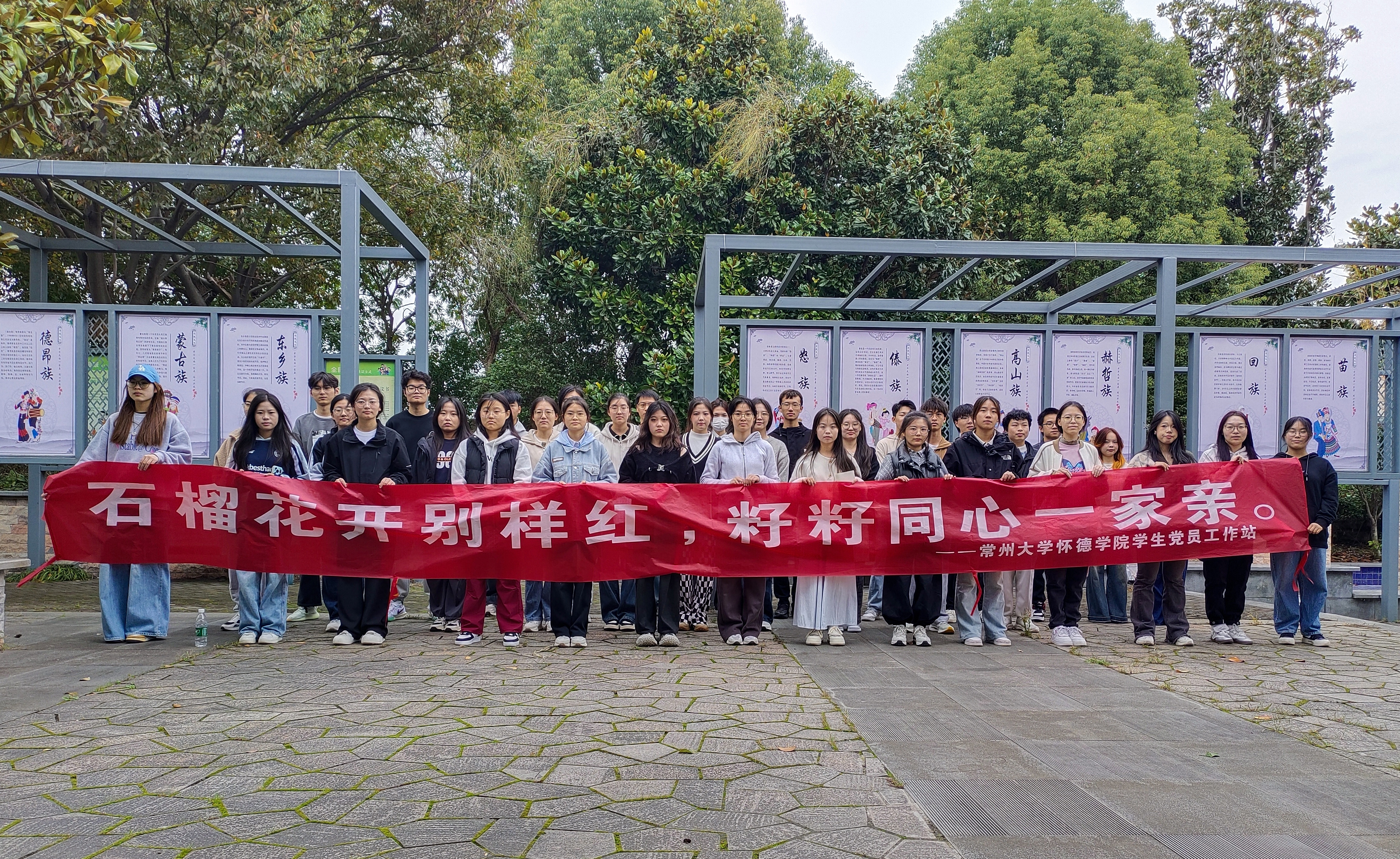 11月9日,必赢76net线路官网学生党员工作站在靖江市斜桥镇东阜湖红石榴公园开展“石榴花开别样红,籽籽同心一家亲”民族团结主题素质拓展活动。