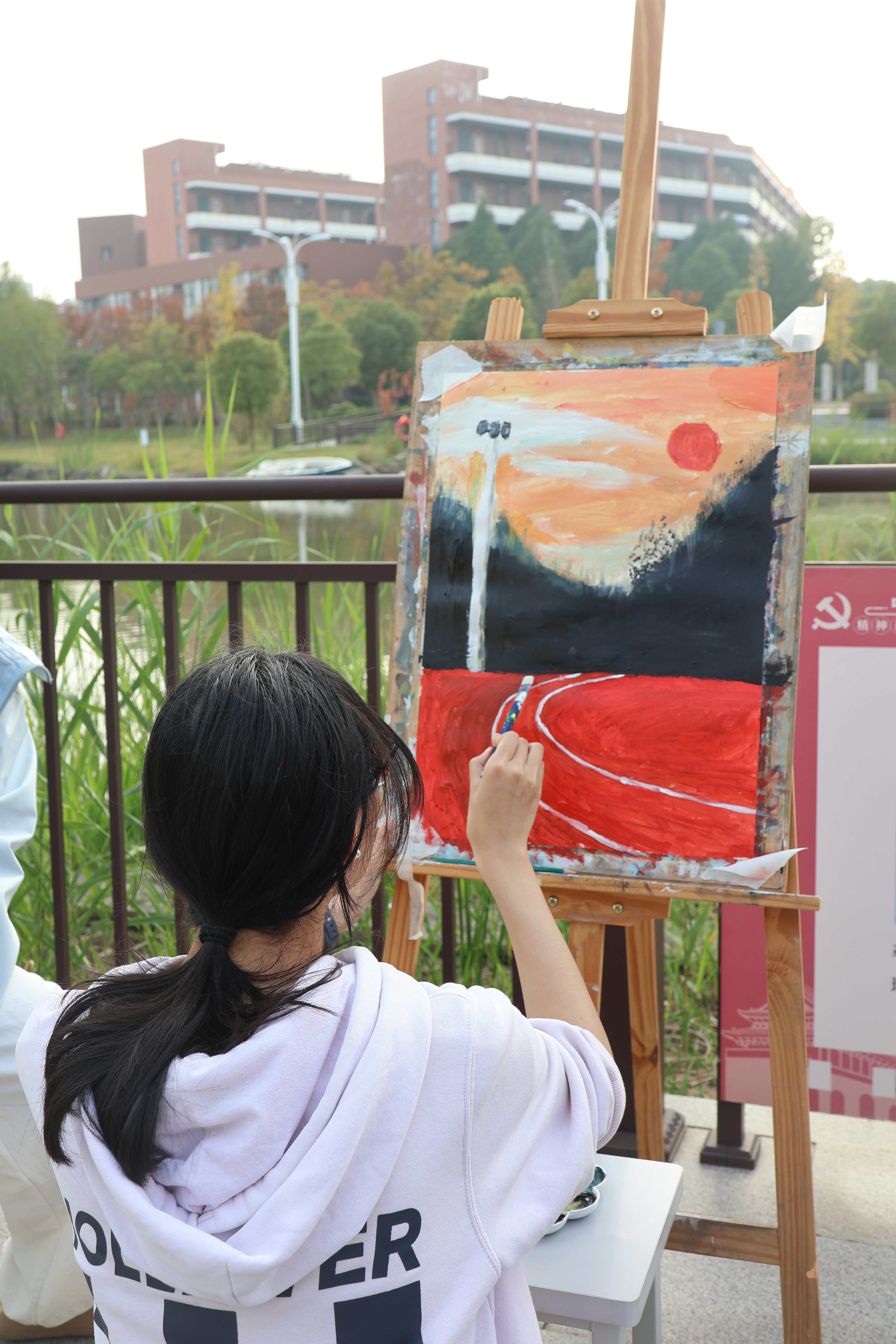 活动期间,师生们热情高涨,积极投入到绘画创作中,学生志愿者凭借扎实的专业功底和丰富的创作经验,耐心地为参与者讲解绘画技巧、色彩搭配和构图方法等。师生们用画笔描绘出自己心中对学风和正气的理解,一幅幅充满创意和感染力的作品应运而生。这些作品有的展现了学生们在课堂上认真听讲、积极思考的场景,有的描绘了教师们辛勤授课、无私奉献的形象,还有的通过抽象的艺术手法表现了良好的学风和校园文化氛围。