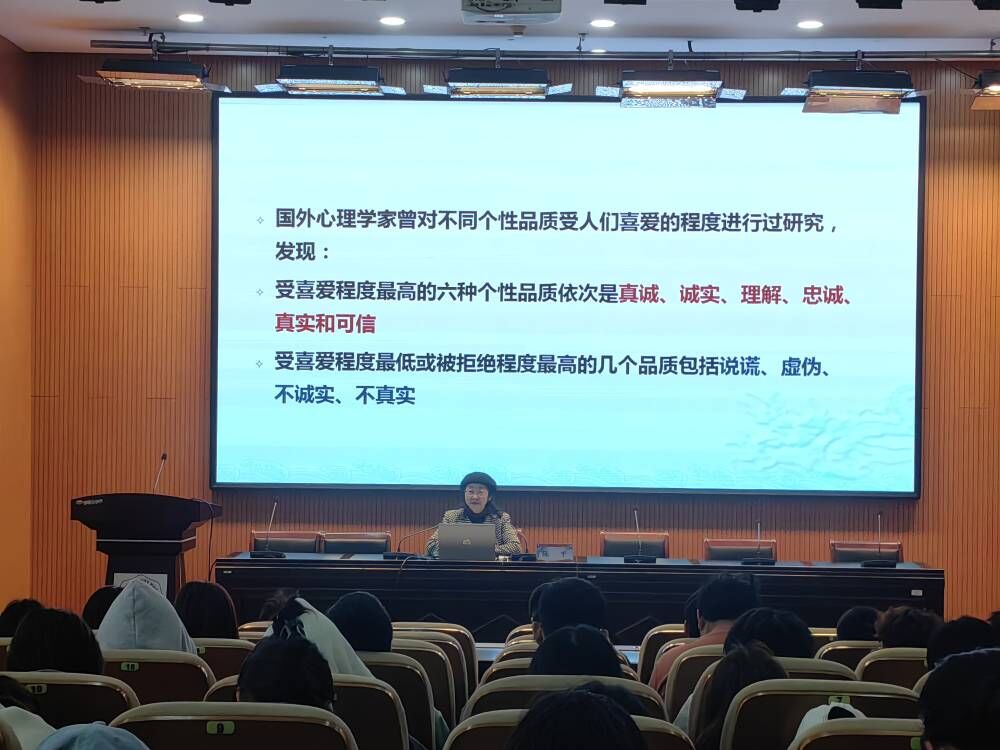 陈平结合自身教学经验与人生感悟,从儒家文化中的“仁”与“智”切入,阐释了人际关系的核心内涵。她指出,“仁”是推己及人的同理心,需以真诚与善意对待他人;而“智”则是洞察与理解的能力,需在交往中明辨是非、尊重差异。通过校园生活中的典型案例,如宿舍矛盾化解、社团合作冲突等,陈平剖析了大学生在人际交往中常见的误区,并提出“换位思考、主动沟通、边界明晰”的解决策略。