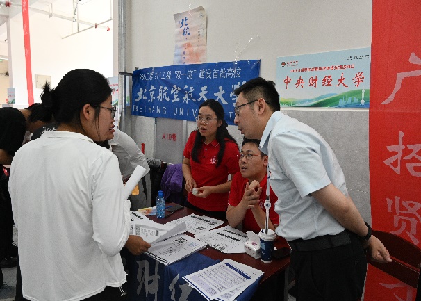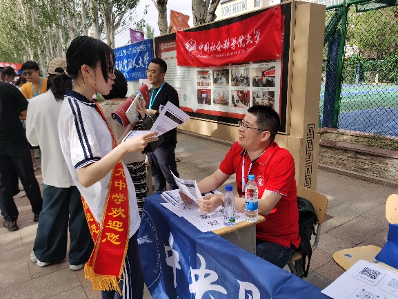 呼和浩特市招生组由党委书记于鹏教授带队,学院MPA中心副主任温锋华副教授、公共事业管理系副教授毕鹏程、国际政治系教师耿喜梅、2023级MPA研究生刘新宇,2021级信息学院本科生郑尔雅参与招生宣传。招生组老师和同学先后赴呼和浩特市第一中学、呼和浩特市第二中学和内蒙古师范大学附属中学开展招生咨询,为考生和家长提供全面、准确的咨询服务,耐心解答考生和家长关心的问题。在呼市的中财校友迅速响应、积极配合、主动支持母校招生工作。同时,于鹏书记与内蒙古自治区校友联络处代表进行了座谈,感谢校友们对母校的关心与支持,并详细介绍了学校近年来在学科建设、师资力量、科研成果等方面所取得的显著成就和未来发展规划。
