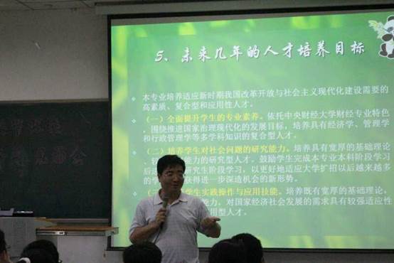 首先,施青军老师介绍了学院的人才培养方案和专业的未来发展前景。施老师主要围绕行政管理专业本科人才培养战略规划,对专业进行了详细的解读,内容高瞻远瞩,富有时代气息。施老师在国家治理体系和治理能力现代化的背景下,引经据典,向同学们展现了学科的光明的前景,激发了同学们对行政管理专业的学习热情。施老师提出,当前行政管理专业依旧存在一些问题,例如专业课程设置领域偏窄,课堂教学重理论、轻应用,经费支持与研究条件不足等,但学院也根据这些问题做了针对性的改革。行政管理系强大的师资力量以及包括案例教学在内的新型教学方式的不断探索,推动了该专业的发展创新,促进了同学们全方位成才。施老师精彩的讲述和独具魅力的讲授风格,赢得了同学们热烈的掌声。
