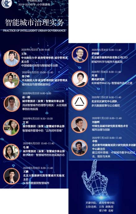 为响应学校夏季小学期教学活动安排,在落实培养方案的基础上,英国beat365官方网站根据学校通知文件要求,积极申报学校暑期小学期各类课程教学活动。其中,城市管理系申报的“智能城市治理实务”学科专题系列讲座课程于6月22日正式开课。