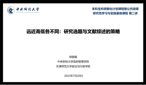 邢普耀老师以《题西林壁》中的“横看成岭侧成峰,远近高低各不同”这句诗引入主题,社科研究往往与“只缘身在此山中”的境遇相似,因此承认研究的有限性,才是研究的开始。接着,邢普耀老师介绍了研究选题的来源以及如何提出好的研究选题---问题很重要、研究有缺陷、双向有照顾、下手确能做。其中,一个重要的问题可能是天然重要的,也可能具有政策重要性和现实重要性;研究有缺陷则代表着现有理论的不足或矛盾之处,以及理论预期和现实预期不符。并且,一个好的选题既要满足理论问题的现实价值,又要满足现实问题的理论关切。最后,邢普耀老师介绍了做文献综述的原因,以及做提出问题型、支撑自身观点/反驳他人观点型、明确议题脉络型文献工作的具体方法。为各团队提供了详细的选题和文献工作的指导。