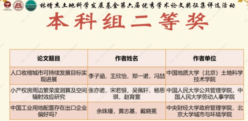 2023年6月25日,由中国人民大学公共管理学院、林增杰土地科学发展基金会同《中国土地科学》编辑部共同主办的“林增杰土地科学发展基金第六届优秀学术论文奖征集评选活动”成功举办。在beat365官网黄志基副教授的指导下,城市管理专业余姝瑾同学撰写的论文《中国工业用地配置存在出口企业偏好吗?》荣获本科组二等奖。
