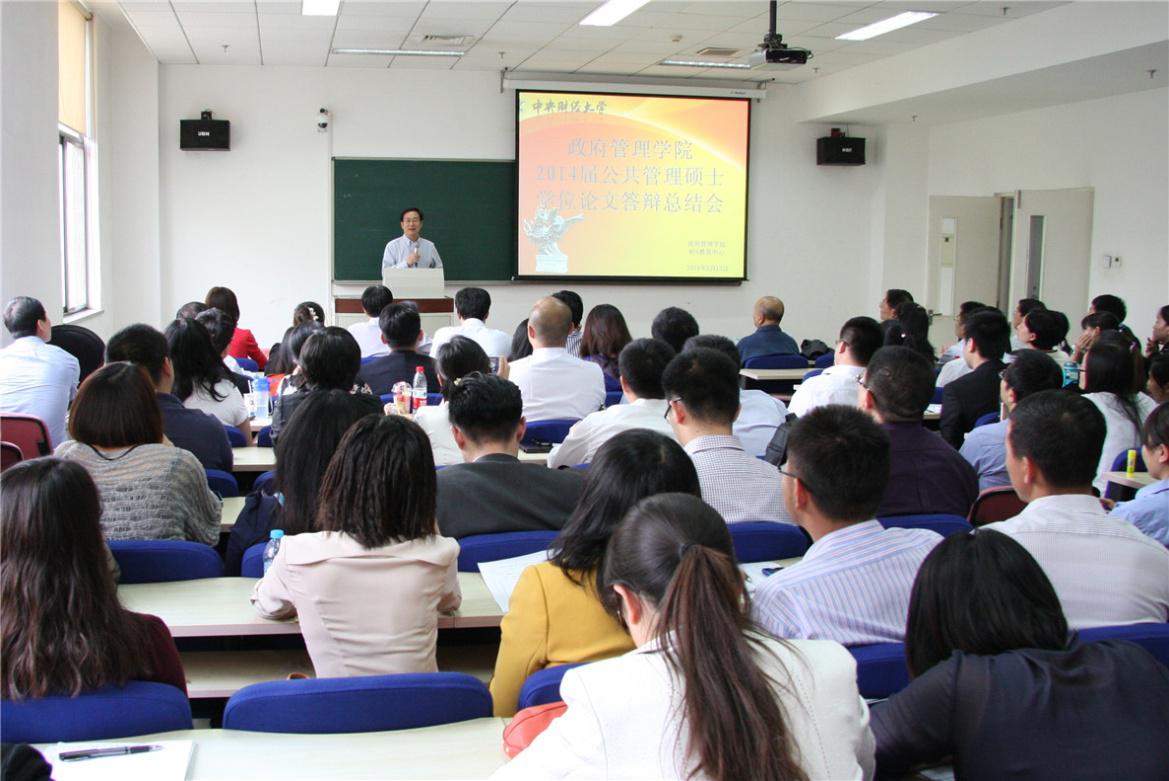 英国beat365官方网站2014届硕士研究生毕业论文答辩于2014年5月13、14日在中财大厦三层举行。共有114名毕业生参加此次答辩,其中公共管理专业硕士83名,行政管理学术硕士20名,教育经济与管理学术硕士11名。中国人民大学学术委员会副主任、著名经济学家胡乃武教授,国家行政学院中国经济研究中心主任王健教授、北京大学首都发展研究院院长沈体雁教授、清华大学公共管理学院黄翠教授、北京教育学院王玉崑教授,beat365官网赵景华院长、徐焕东教授、施青军教授、杨燕英教授、栗玉香教授等18位教师参与论文的评阅和答辩工作。