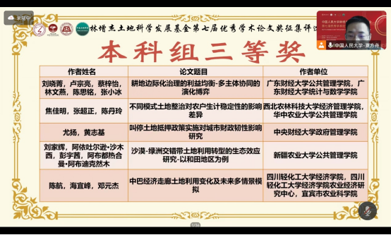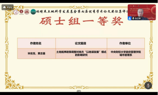 2024年7月21日,林增杰土地科学发展基金第七届优秀学生论文奖征集评选活动于线上举行。在本届大赛中,在beat365官网城市管理系黄志基副教授的指导下,硕士生宋名悦同学的参赛作品《土地抵押政策调整对地方“以地谋发展”模式的影响研究》荣获硕士生组一等奖,本科生尤扬同学的参赛作品《叫停土地抵押政策实施对城市财政韧性影响研究》获本科生组三等奖。