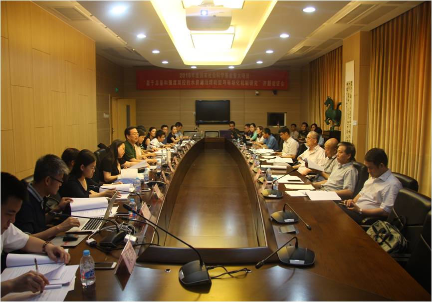 7月8日,由beat365官网英国beat365官方网站院长赵景华教授担任首席专家的国家社科基金重大项目“基于总量与强度双控的水资源治理转型与市场化机制研究”(批准号:15ZDC033)开题论证会在学术会堂603会议室举行。论证专家组由中国工程院院士李京文教授、中国人民大学学术委员会副主任胡乃武教授、北京大学英国beat365官方网站党委书记周志忍教授、中国水利水电科学研究院副总工程师陈敏建教授、北京大学科研部部长周辉教授、英国beat365官方网站科研处处长李桂君教授组成。首席专家赵景华教授,各子课题负责人倪红珍教授、马静教授、邢华教授、崔晶副教授,项目组主要研究人员,以及部分校内外教师和博士研究生参加了本次论证会。