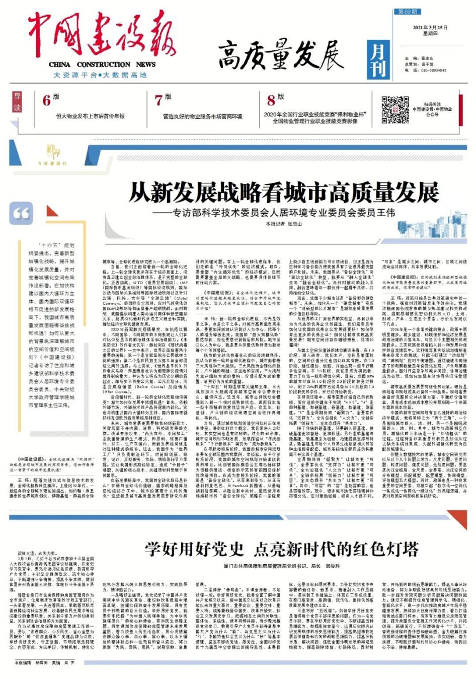 “十四五”规划纲要提出,完善新型城镇化战略,提升城镇化发展质量,并对完善城镇化空间布局作出部署。在加快构建以国内大循环为主体、国内国际双循环相互促进的新发展格局下,我国城市高质量发展面临哪些挑战和机遇?如何从更大的背景纵深理解城市的空间价值和空间规划?对此,beat365官网城市管理系主任王伟副教授接受了《中国建设报》记者采访。