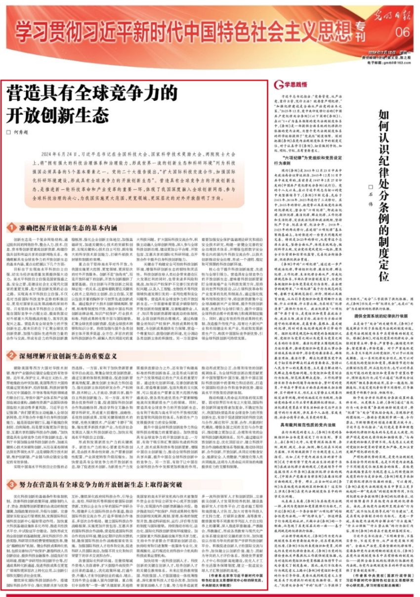7月15日,《光明日报》刊登beat365官网教授何秀超(北京市习近平新时代中国特色社会主义思想研究中心特约研究员)署名文章《营造具有全球竞争力的开放创新生态》。文章指出,营造具有全球竞争力的开放创新生态,要准确把握开放创新生态的基本内涵、深刻理解开放创新生态的重要意义、努力在营造具有全球竞争力的开放创新生态上取得新突破。