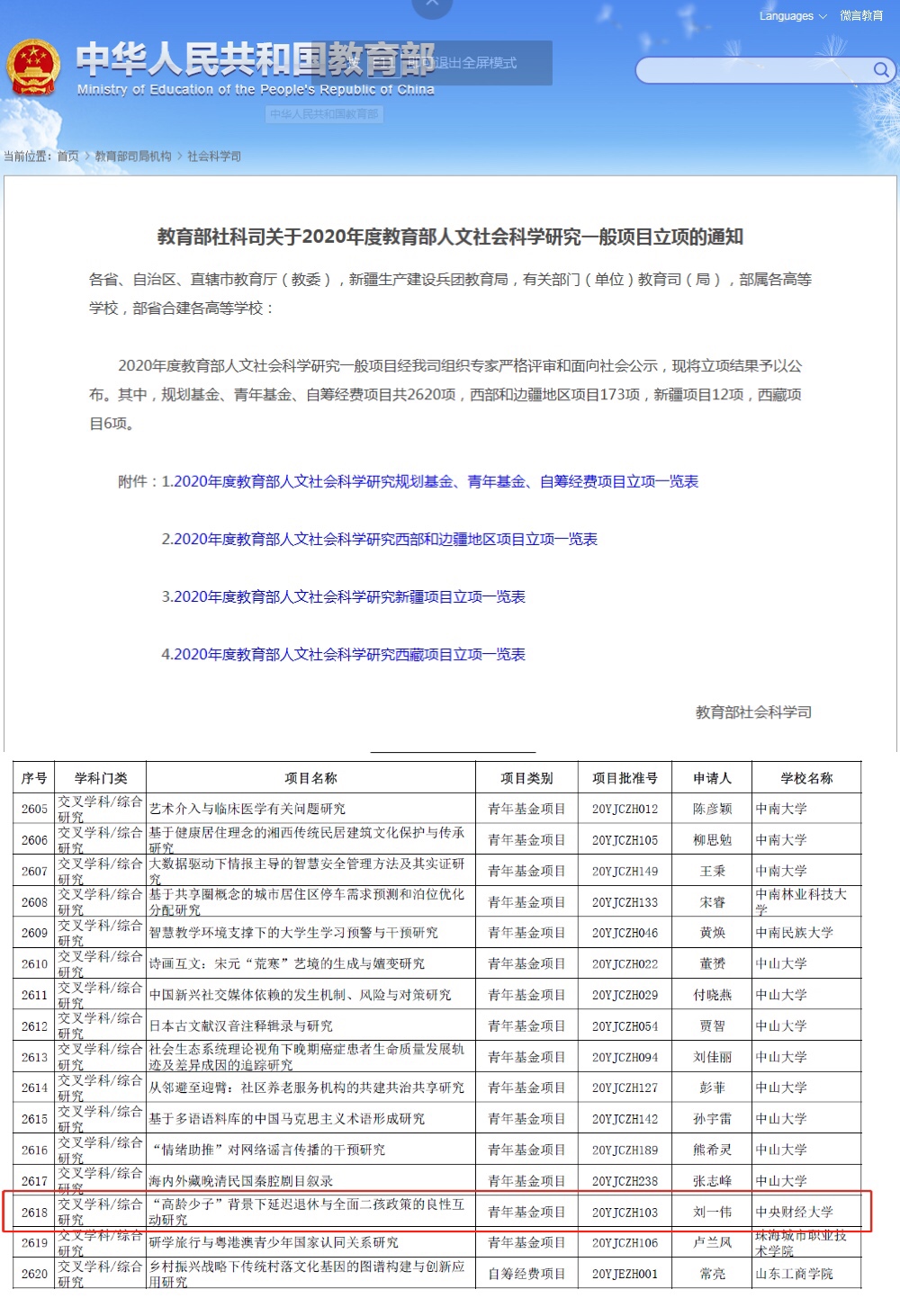 近日,2020教育部人文社会科学研究项目评审结果揭晓,beat365官网刘一伟博士主持的《“高龄少子”背景下延迟退休与全面二孩政策的良性互动研究》获批青年基金项目(项目批准号:20YJCZH103)。