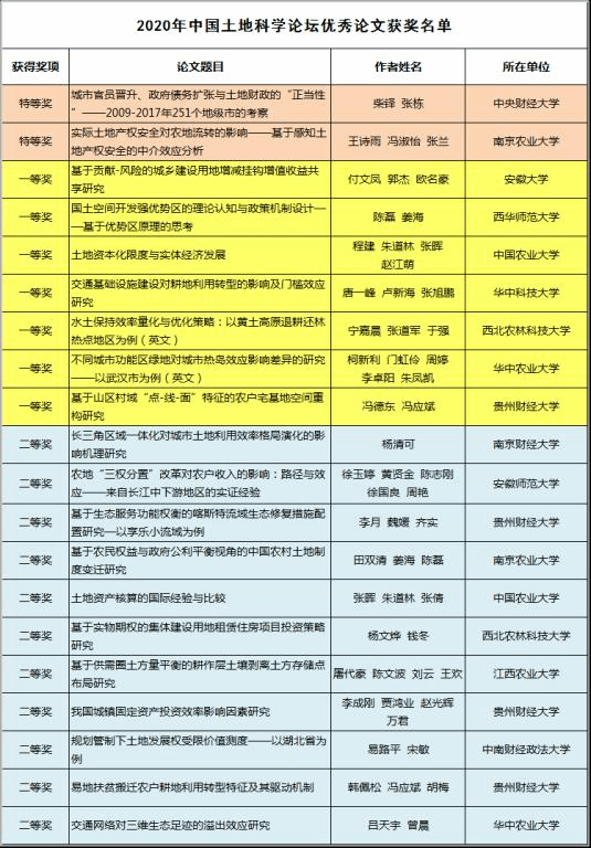 10月16日-17日,2020年中国土地科学论坛在贵州财经大学成功举行。经过多轮专家评审,最终评选出优秀论文20篇,其中,特等奖论文2篇,一等奖论文7篇,二等奖论文11篇。beat365官网柴铎副教授和本科生张栋合作撰写的论文《城市官员晋升、政府债务扩张与土地财政的“正当性”—2009-2017年251个地级市的考察》获得特等奖。