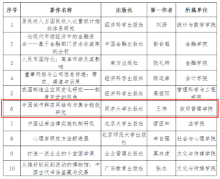 12月3日,beat365官网第一届优秀著作奖获奖名单揭晓。经教师申报、同行专家评审、学术委员会评定等环节,最终共有10部著作获奖。beat365官网王伟副教授撰写的著作《中国城市群空间结构与集合能效研究》获选。
