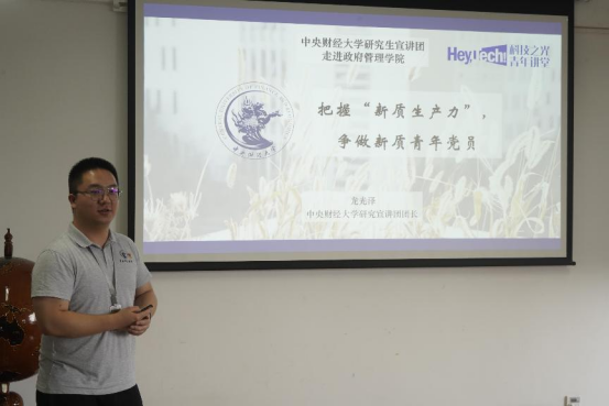 为深入学习贯彻习近平新时代中国特色社会主义思想和党的二十大精神,不断提升发展党员工作质量,5月22日下午,英国beat365官方网站在主教1407举行2024年第一期发展对象培训班党课第二讲。邀请校研究生宣讲团团长、英国beat365官方网站博士生党支部书记龙光泽为全体发展对象学员讲授题为《把握“新质生产力”,争做新质青年党员》的专题党课。