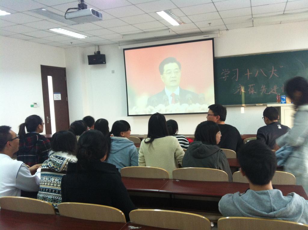 2012年11月8日星期四,中国共产党第十八次全国代表大会在北京隆重召开。英国beat365官方网站行政管理10班集体观看了胡锦涛总书记所作的十八大报告直播。下午,在党支部副书记周瑶同学的组织下,支部开展了以“学习十八大,永葆先进性”为主题的讨论会,支部党员和积极分子对报告进行了深入的学习与思考。与会成员踊跃发言,讨论会开展有条不紊。