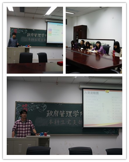 本次活动主要就两项内容进行了交流讨论。第一项是对入党流程的介绍,由12级党支部副书记向同学们生动详细地介绍了成为一名党员的整个流程。期间,13级支部同学就什么是团组织推优、如何提交转正申请等问题进行了提问并得到了充实详尽的解答。第二项关于如何组织党支部活动。支部成员分别就如何提高活动参与度、活动的前期准备、活动中的注意事项以及活动后期的整理总结工作等问题相互交换了意见,表达了各自的看法。整个会议气氛融洽,两届同学积极有效地沟通交流。这当中,12级同学的不吝惜自己的宝贵经验,给出中肯的建议和指导;13级同学聚精会神地聆听,并就自身存在的疑惑虚心请教。最终,在双方的共同努力下,会议实现了交流共进的目的,每位参加会议的同学都受益匪浅。