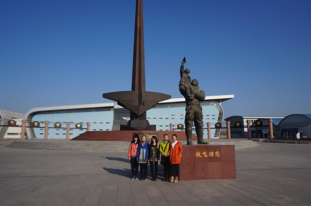 走进航空博物馆,那高达十余米的馆标便让所有人的精神为之一振。一架通体洁白、正在紧急上升的单座轻型歼击机直指苍穹,让所有的成员不免叹为观止。它的基座上面则刻着由杨尚昆同志题写的四个大字——志在蓝天,这着实让参观的学员们充满了深深的崇敬与震撼。在博物馆中央,一块用完整花岗岩刻成的“天魂”碑上题写着“纪念为中华民族航空航天事业献身的先人、同仁和朋友”。字字铿锵,令人肃然起敬。此后,同学们还参观了露天停机坪。他们不仅看到了200多架不同型号的飞机,也看到了地对空导弹、雷达等其他航空展品。这些展品的规模之大,数量之多,让所有人大开眼界。值得一提的是,在这个露天展厅内停放着一架银白色伊尔-14飞机是毛泽东的座机之一。从1957年至1958年,毛泽东曾23次乘坐这架飞机飞往全国各地。同学们登机参观之后,对毛主席日理万机为民操劳的情怀感动不已。沿着英雄大道两旁的浮雕展现着中国航空和空军从历史走向未来的光辉历程。道路的尽头巍然矗立着一座“利剑”雕塑,展现着中国空军敢于亮剑的精神。还有那些在抗美援朝中做出过卓越贡献的功勋战机、著名豫剧表演艺术家常香玉捐赠的米格-15飞机等,都让同学们感受到了鼓舞、震撼以及深刻的爱国主义情怀。