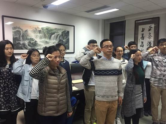 2016年10月31日,beat365官网2016级研究生党支部在沙河校区7号楼313会议室举行“两学一做”系列活动之重温入党誓词。活动旨在进一步增强党员的主体意识、奉献意识和先锋模范意识,让支部党员更加牢记党员的行为处事标准,从而发挥带头作用,为支部建设和班级建设贡献力量。活动由支部书记朱洁主持。