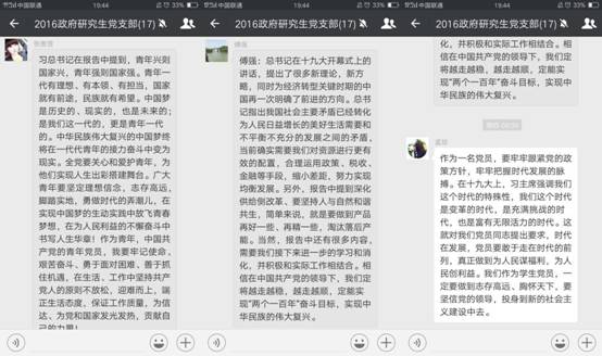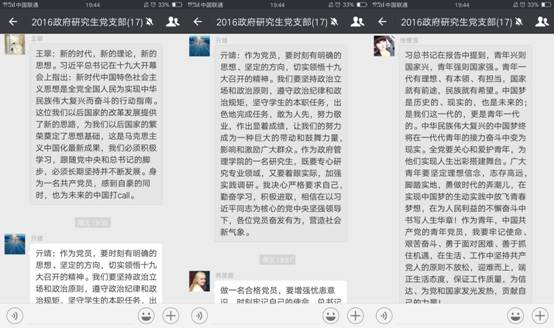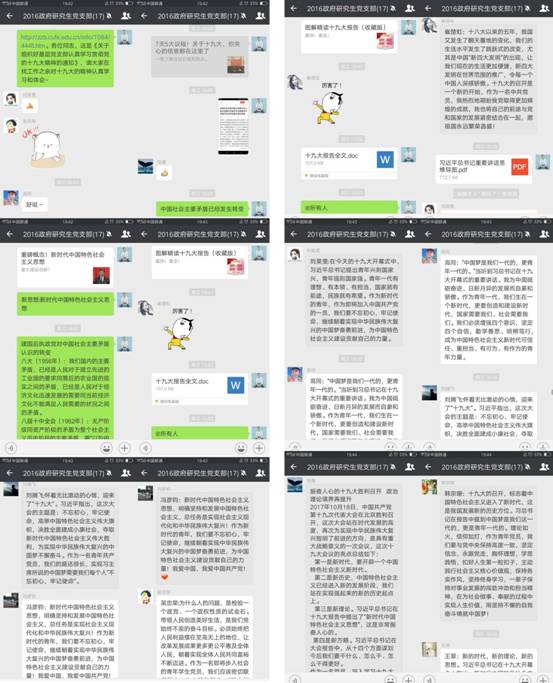 10月18日,党的十九大隆重开幕。beat365官网2016级研究生党支部积极收看开幕盛况,聆听习近平总书记代表党中央所作的十九大报告,观看后第一时间在线上进行了积极讨论和热议。