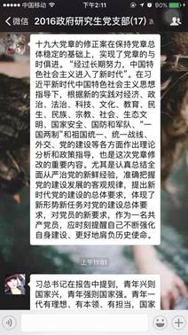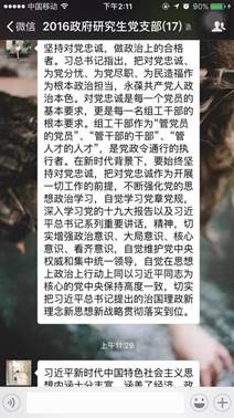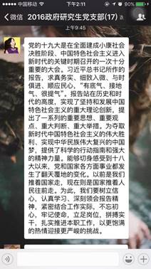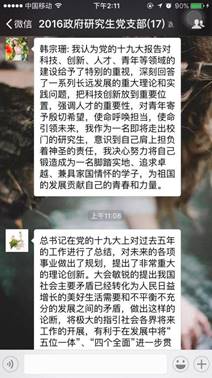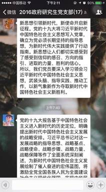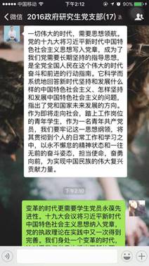 11月5日,beat365官网2016级研究生党支部召开十九大报告线上学习交流会,热议十九大报告,交流各自对于十九大报告学习的心得。支部党员结合自己实际,从不同的角度总结了自己学习十九大报告中的体会。