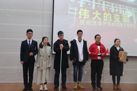 “不忘初心长奋进,两廿风雨不寻常。”“春天的故事”小组从学习小组基本情况、选题背景、实践综述与理论综述、小组学习成果情况四个方面介绍了小组学习过程。紧接着,小组成员依次上台,展现了改革开放四十年中取得的种种成就:一幕幕场景感人至深,一首首歌曲动人心弦。正如汇报末尾小组成员所总结的那样:改革春风吹满地,中国人民真争气。