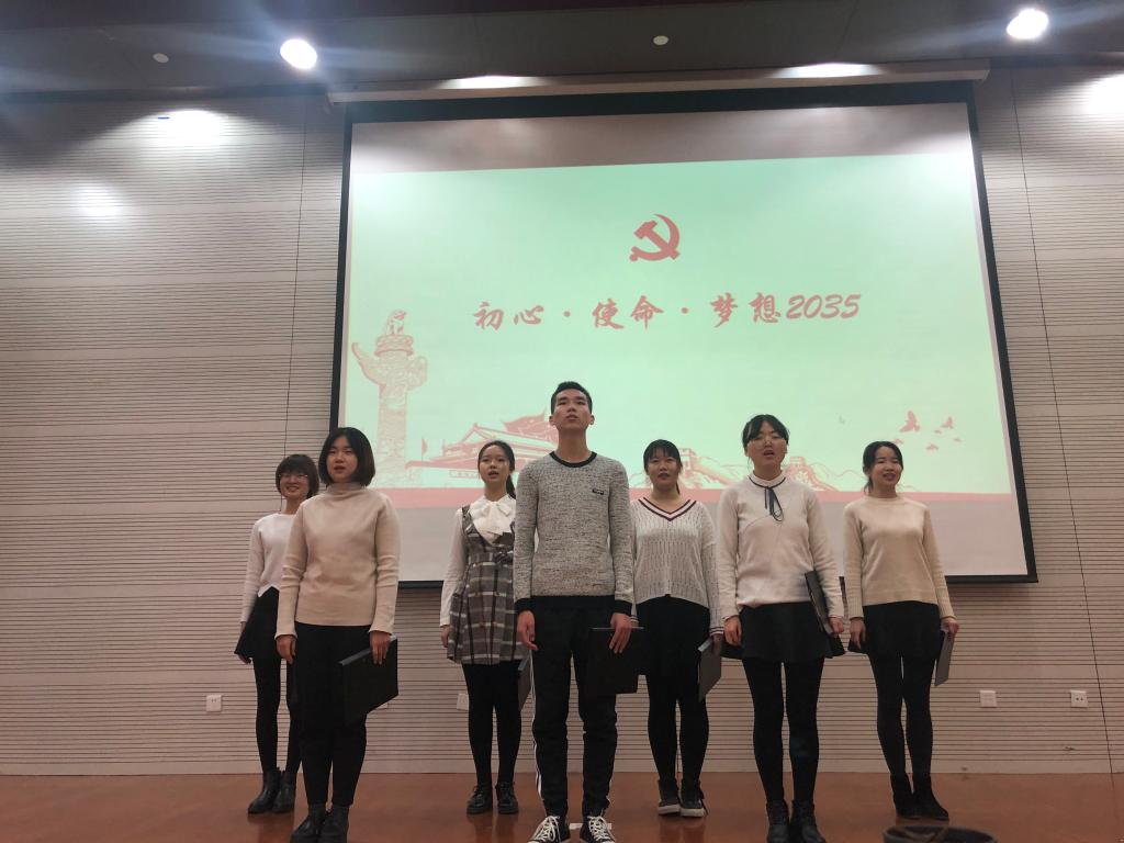 “永远跟党走”小组首先带来关于使命与初心意义的阐述。接着,小组成员用歌曲、朗诵、舞蹈等形式传达对“2035”的美好期待。“重温历史,我们对祖国苦难的过去,刻骨铭心;展望明天,我们对祖国光明的未来,充满信心。”不忘初心圆梦想,牢记使命创辉煌,中国梦不再是梦,“2035”近在眼前。