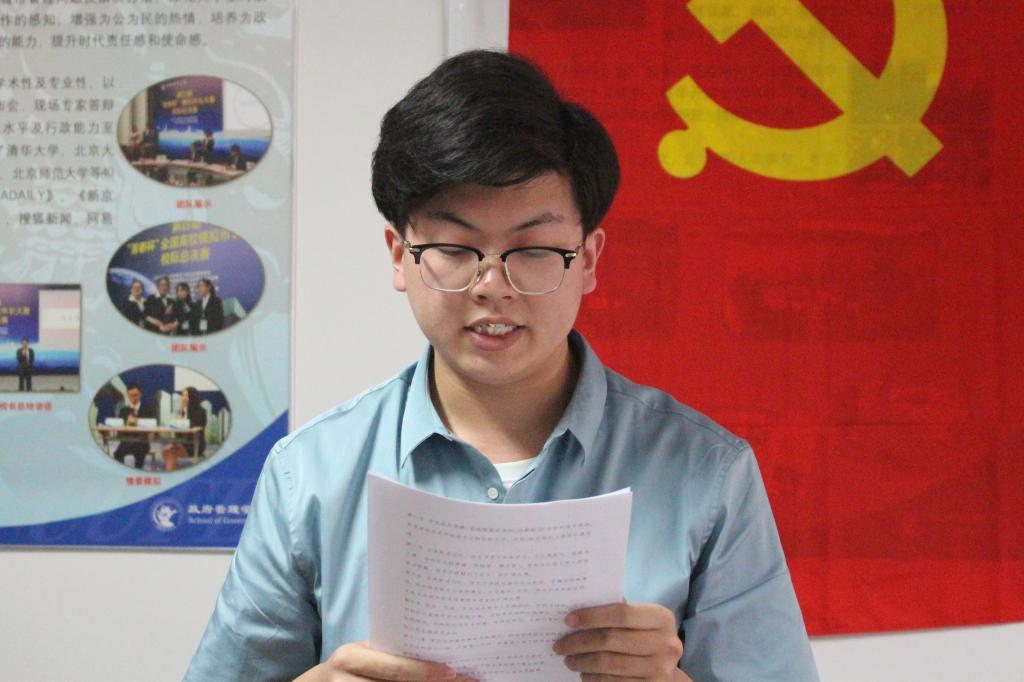 随后,学员代表尹燕斌发言。尹燕斌认为作为新时代的大学生,树立的世界观、人生观、价值观必须与党的宗旨和目标相符合,以全心全意服务人民、建设社会为己任。他向在场的学员们分享了自己对习近平总书记在纪念五四运动100周年大会上讲话的感悟,号召大家要树立远大理想,热爱伟大祖国,担当时代责任,勇于砥砺奋斗,锤炼品德修为,争做新时代有为青年。