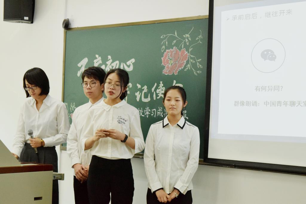 中国共产党章程是中国共产党的为实现党的纲领、开展正规活动、规定党内事务所规定的根本法规。“闪闪的六颗小红星”通过小组成员个人微党课的形式向我们介绍了中国共产党章程的历史变迁,阐释了总纲、党的干部、党的纪律等中国共产党章程重点内容,融入了个人的认识和理解,彰显了学习的思考深入性。小组还加入了问答竞猜的环节,带领台下其他小组的成员共同重温中国共产党章程,牢记初心,同学们纷纷踊跃答题,现场的气氛更加活跃。