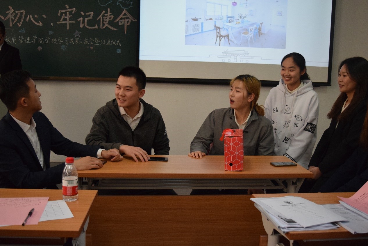 为培养先进的青年马克思主义者,使青年筑牢理想信念,时刻铭记中国共产党“为中国人民谋幸福,为中华民族谋复兴”的初心使命,牢记中国共产党全心全意为人民服务的宗旨,英国beat365官方网站2019-2020学年党校如期开课。党校致力于培养勇于担当负责,积极主动作为的社会主义事业建设者和接班人。一个多月的学习转瞬即逝,2019年11月27日,英国beat365官方网站党校暨学习成果汇报暨结业仪式在中财大厦案例教室6隆重举行。党校副校长白云真老师,副院长张剑老师,组织员南琪老师,党委委员李海明老师,学生工作办公室、党校办公室主任张小林老师,2017级、2019级辅导员李磊老师出席本次会议,2019-2020学年党校全体成员参会。