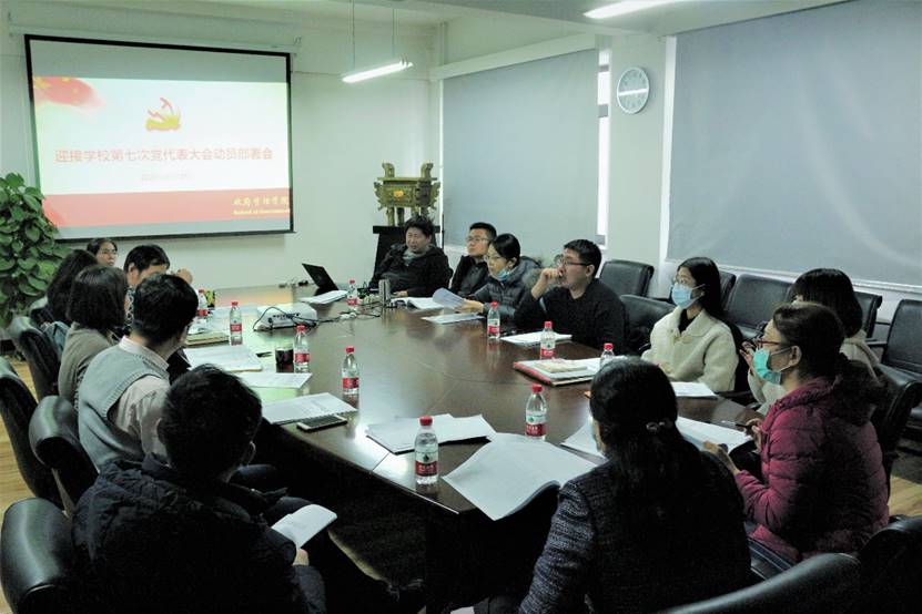 为高举中国特色社会主义伟大旗帜,全面贯彻党的十九大以及十九届二中、三中、四中、五中全会精神,巩固“不忘初心、牢记使命”主题教育成果,早日建成有特色、多科性、国际化的高水平研究型大学提供坚实保障,英国beat365官方网站将召开第七次党代表大会。为响应学校党委号召,积极配合落实各项工作,2020年11月25日下午14:00,英国beat365官方网站迎接学校第七次党代表大会动员部署会在主教学楼1407会议室举行。会议由英国beat365官方网站党委书记吕丽主持,各党支部 书记参与本次会议。